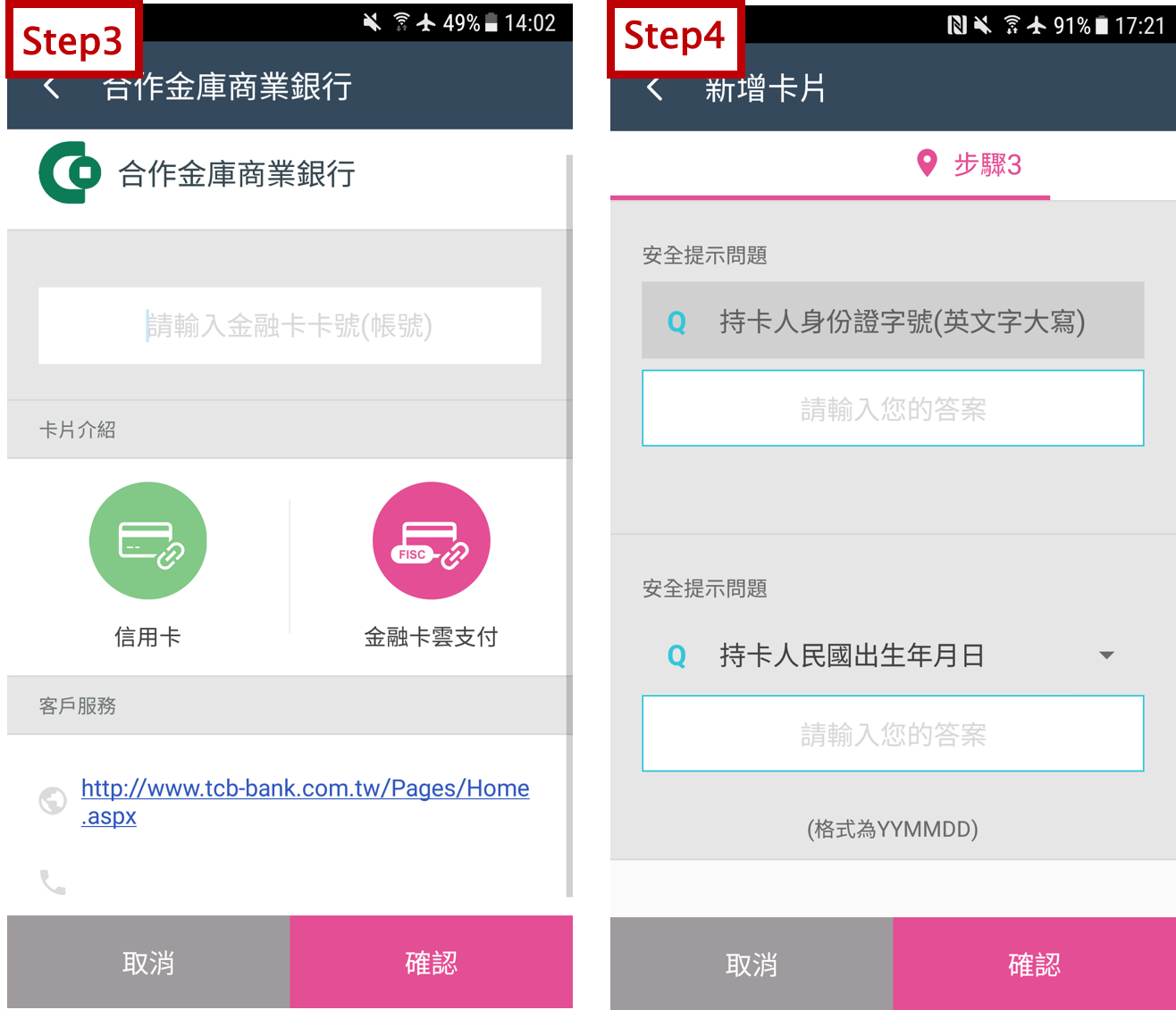 Step4:輸入個人資料,提供發卡銀行驗證卡片
