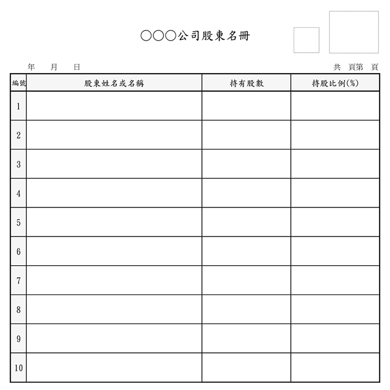 需載明股東姓名/名稱及其持有股份數、資本額或持股比例,並加蓋公司章。 - 股權結構文件(如有法人股東)