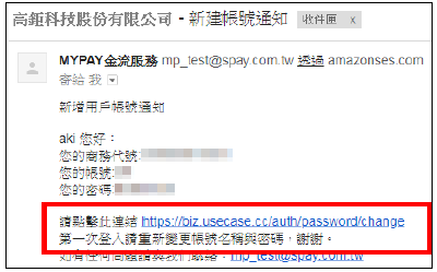 3. 該人員會收到開通帳號的通知mail,點擊連結並依步驟修改密碼後即可登入。